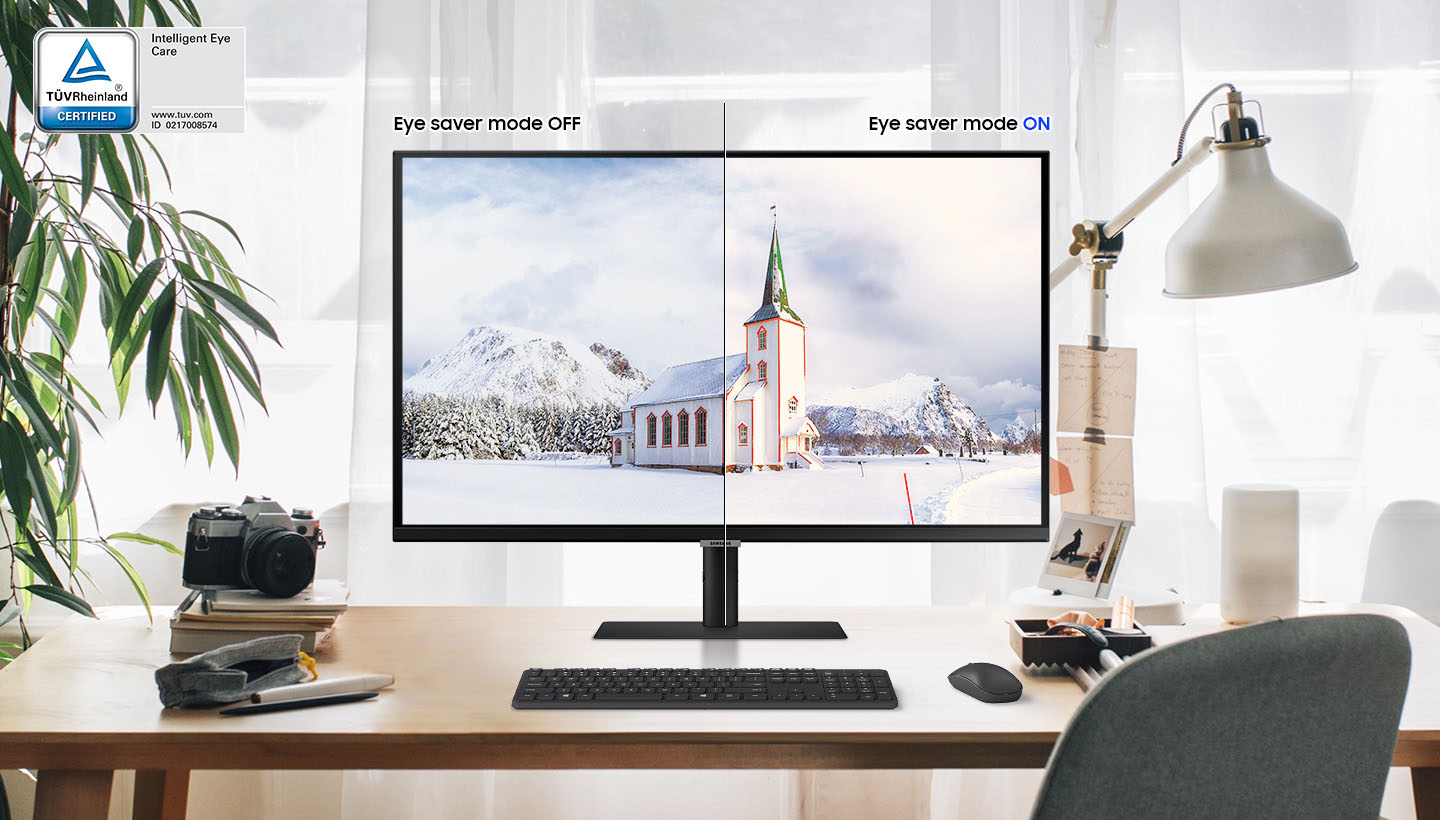Монітор автоматично регулює яскравість і колірну температуру відповідно до середовища, в якому ви працюєте. Режим Eye Saver мінімізує випромінювання синього світла, яке шкідливо впливає на сітківку, а технологія Flicker Free зменшує мерехтіння зображення. Ви можете користуватися монітором довше, не сльозяться та не горять очі.