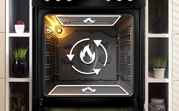 Конвекція повітряОдночасне використання овального нагрівача і вентилятора гарантує рівномірне і оптимальне приготування будь-якої страви - навіть дуже великих. Конвекція також дозволяє використовувати кілька рівнів духовки одночасно, тому ви можете випікати навіть кілька порцій одночасно.