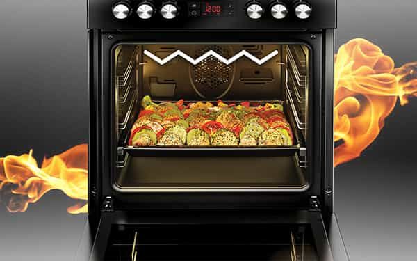 Одночасне використання овального нагрівача і вентилятора гарантує рівномірне і оптимальне приготування будь-якої страви - навіть дуже великих. Конвекція також дозволяє використовувати кілька рівнів духовки одночасно, тому ви можете випікати навіть кілька порцій одночасно.