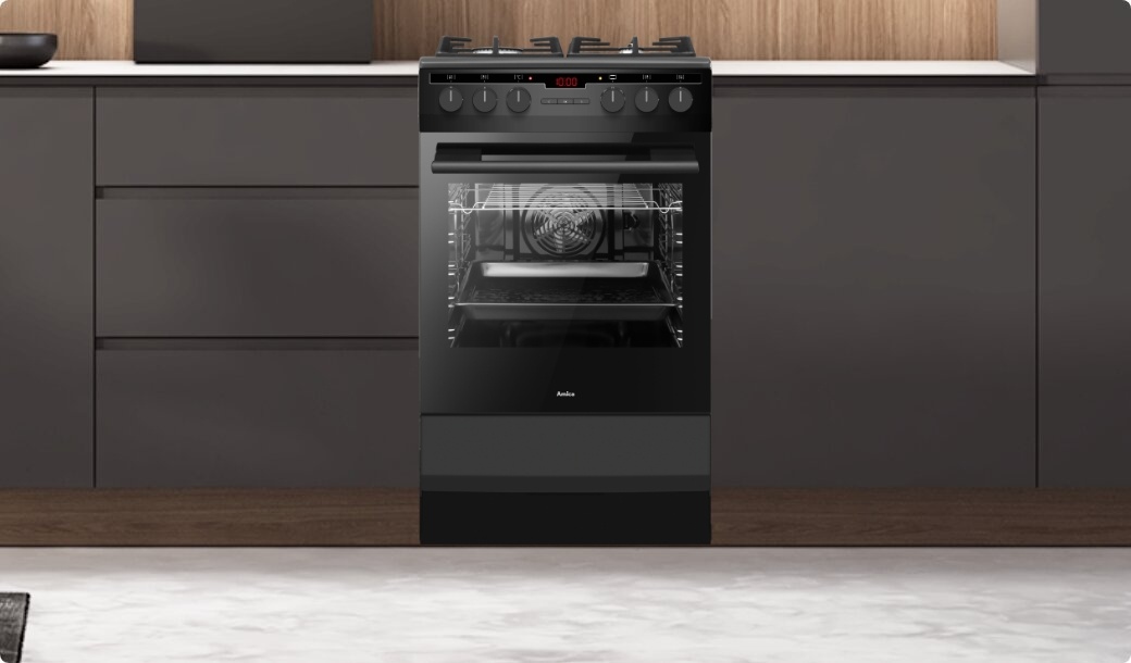 Ви чи хтось із ваших близьких напевно хоч раз обпікалися, випадково торкнувшись гарячого скла духовки. З кухнею Amica вдома таких ситуацій не виникне. Дверцята духовки оснащені трьома скляними панелями - внутрішня є світловідбиваючим склом, яке відбиває тепло, запобігаючи перегріву зовнішнього скла. Забезпечте безпеку на кухні для всіх домочадців.