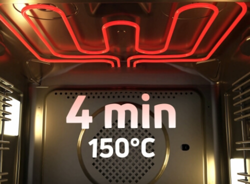 Духовка розігріється до 150°C за 4 хвилини.