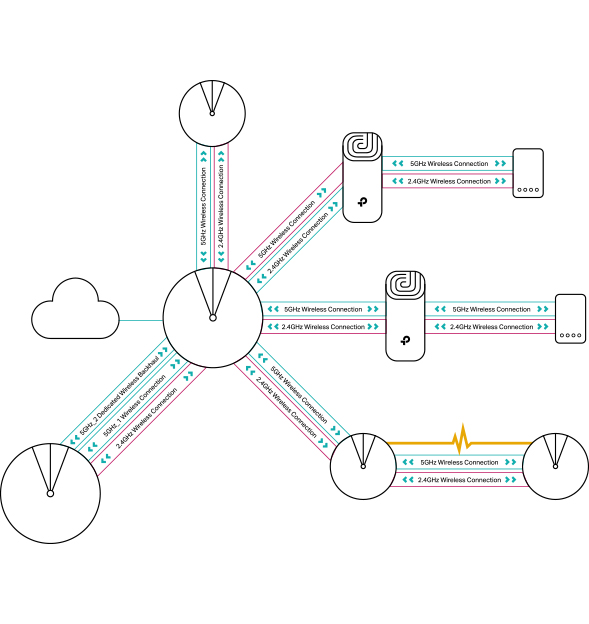 Deco M5 може створити сітчасту мережу з будь-якою іншою моделлю Deco. Щоб збільшити радіус дії вашої мережі, просто додайте до неї ще один блок Deco.