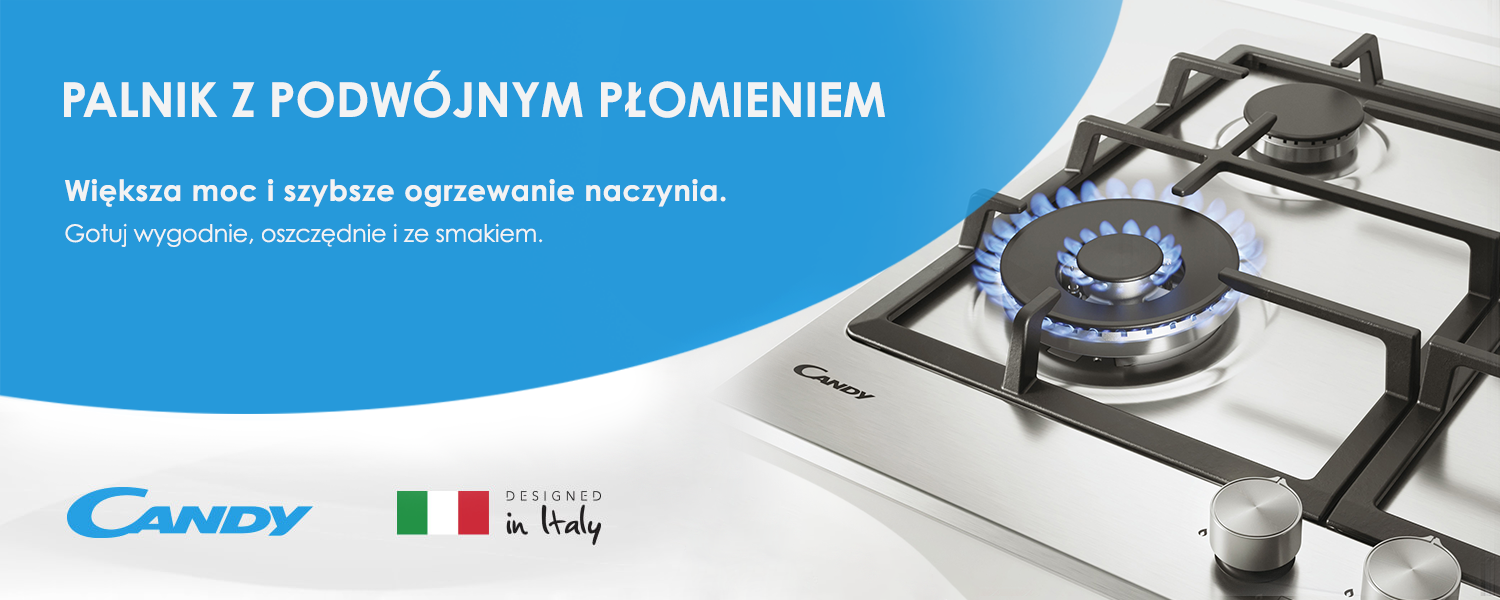 Плити Candy мають практичний іскровий запал, розташований поруч із ручками, який запалює полум’я на полі нагріву. Завдяки цьому рішенню вам не потрібно використовувати окремий пристрій для розпалювання полум’я.
