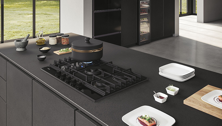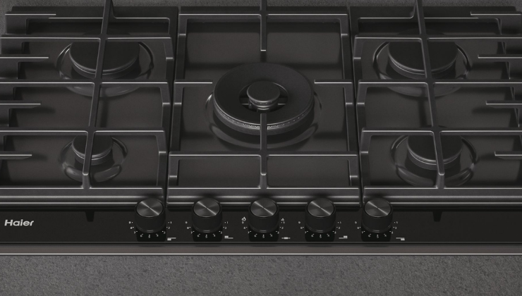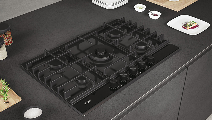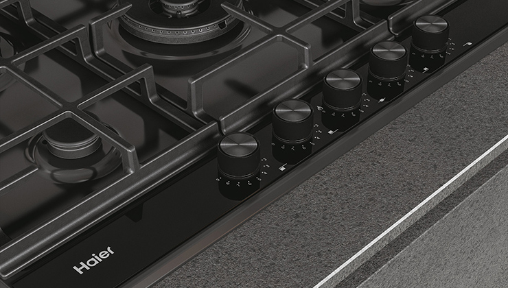 Більше ніяких компромісів між професійними функціями та привабливим дизайном. Чорні чавунні решітки збігаються з новими ручками Haier і темно-сірою нашивкою під панеллю керування. Відкрийте для себе колекцію Gas on Metal 6.