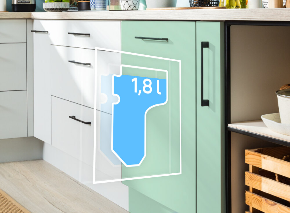 Спеціальний бак об'ємом 1,8 л дозволяє економити воду під час кожного циклу прання. Ця технологія передбачає використання води з останнього полоскання вже вимитого посуду для миття або попереднього полоскання в наступному циклі. Система також піклується про гігієну - якщо зібрану воду не використати протягом 48 годин, посудомийна машина автоматично видалить її.