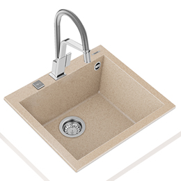 Найтепліший відтінок бежевого з кольором, схожим на натуральний пісковик! Додайте трохи сонця на свою кухню та підберіть цю мийку до дерев’яних меблів теплих кольорів.