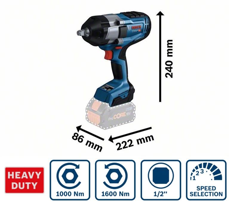 Оптимальна продуктивність для важких умов експлуатації завдяки моменту затягування 1000 Нм і моменту розриву до 1600 Нм.