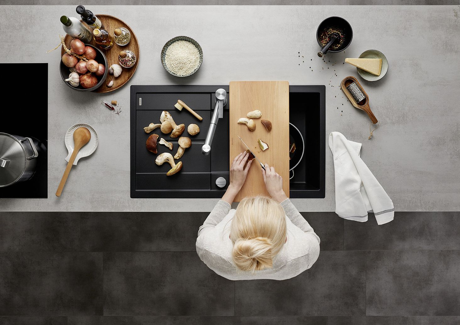 Готувати продукти можна прямо на мийці з композиту SILGRANIT® PuraDur®.