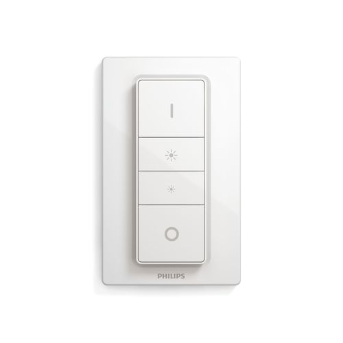 Диммер Philips Hue з батарейним живленням дозволяє легко керувати джерелами білого світла для навколишнього освітлення. Перемикання між 4 рівнями інтенсивності освітлення просте та здійснюється одним натисканням кнопки. Контролер диммера можна розмістити в будь-якому місці кімнати завдяки маленькій елегантній док-станції, а сам пристрій не потребує жодних кабелів. Використовуйте його як пульт дистанційного керування або повісьте на стіну, щоб насолоджуватися світловою сценою, яка підходить для будь-якого часу доби. Один диммер може контролювати до 10 точок світла Hue.