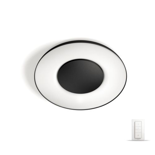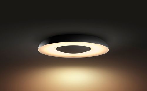 Освітліть кожну мить_x000D_ від зорі до зорі. Стельовий світильник Still (чорного кольору) із вбудованим світлодіодним джерелом світла забезпечує широкий діапазон білого світла (від холодного до теплого білого. Підберіть біле світло до поточної діяльності та легко керуйте світлом за допомогою бездротового диммера, що входить у комплект. Можна під’єднати до інтелектуальної системи освітлення Philips Hue.