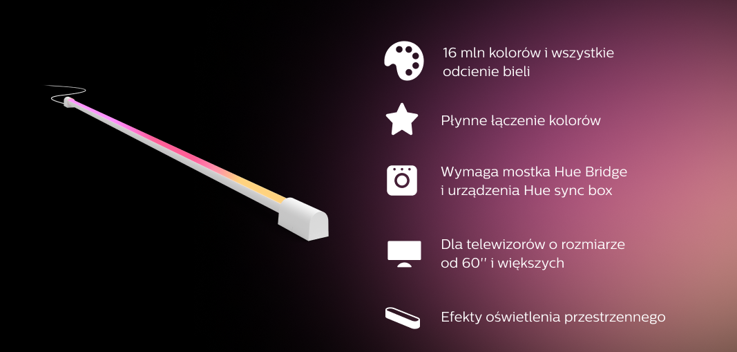 1 світлодіодна трубка Philips Hue White і Color Ambiance Gradient Play (біла),
