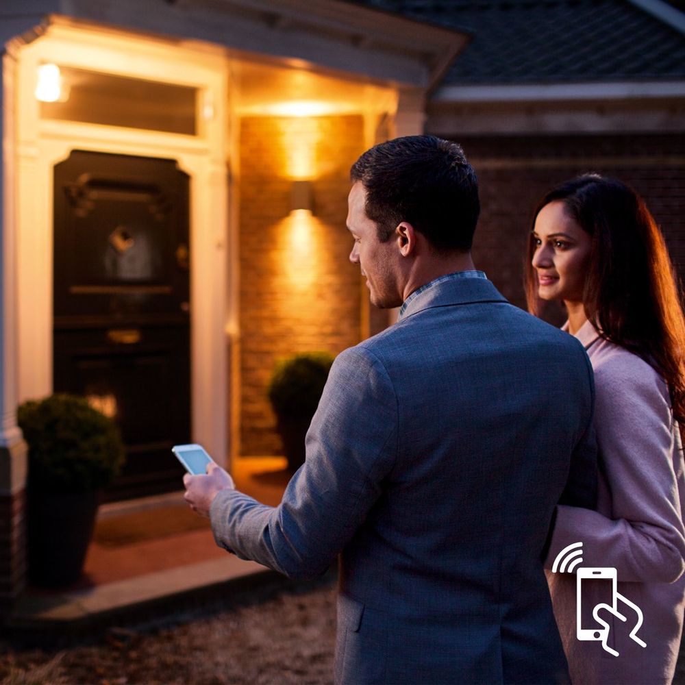 Використовуючи мобільний додаток Philips Hue (доступний для iOS та Android), ви можете дистанційно керувати освітленням з будь-якого місця. Перебуваючи поза домом, ви можете в будь-який момент перевірити, чи вимкнули ви світло, і легко увімкнути його знову. Для дистанційного керування освітленням потрібен міст Philips Hue.