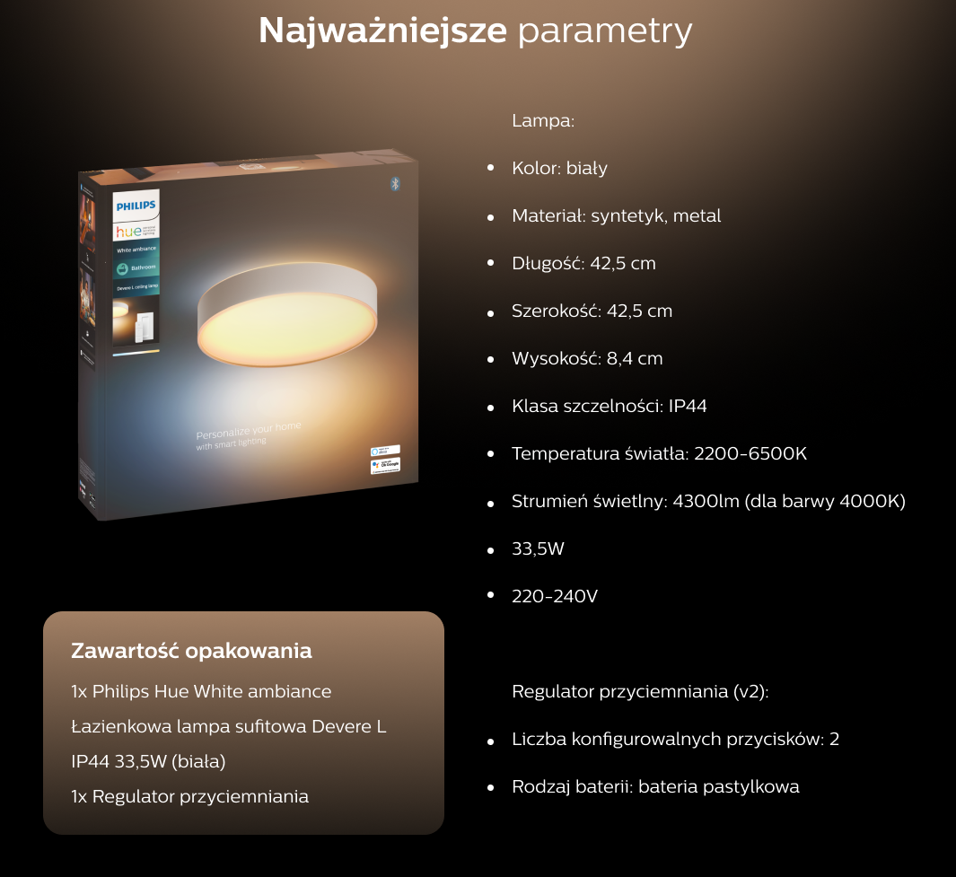 Світлодіодна лампа PHILIPS HUE White ambiance Devere L IP44 35,5 Вт білий