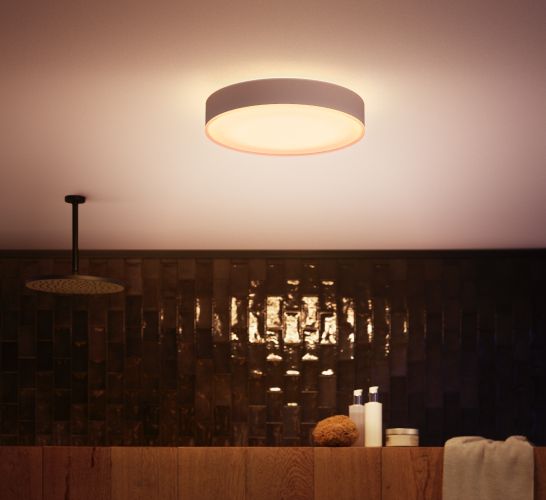 Водостійке інтелектуальне освітлення для ванних кімнат. Усі продукти, призначені для освітлення ванних кімнат, мають ступінь герметичності IP44, що означає, що вони придатні для використання у вологих приміщеннях.