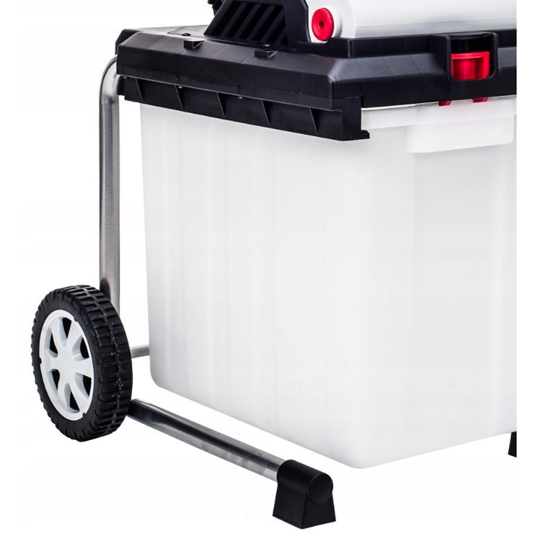 Пристрій має подвійні обертові ножі із загартованої сталі, які можна заточувати та замінювати._x000D_ _x000D_ Для забезпечення безпеки користувача шредер має захист від перевантаження, блокування перезапуску в разі тимчасового відключення електроенергії та лезо для штовхання гілок._x000D_ _x000D_ Широко розставлені колеса забезпечують стійкість пристрою під час роботи.