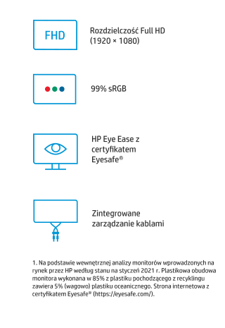 Низькі рівні синього світла без впливу на якість кольору. Монітор на 85% виготовлено з місцевих матеріалів перероблений.