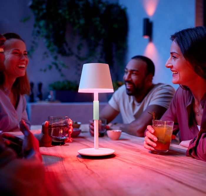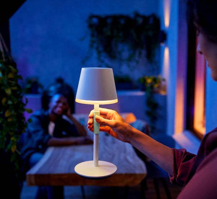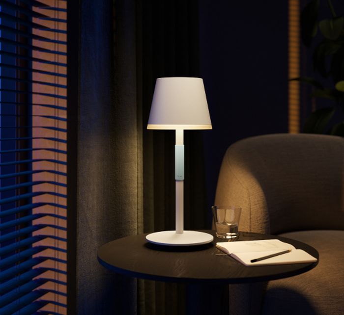 Завдяки силіконовій ручці та міцній конструкції портативної настільної лампи Philips Hue Go ви можете брати її з собою куди завгодно, вдома чи поза ним.