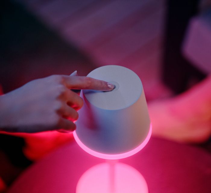 Завдяки кнопці, розташованій у верхній частині лампи, ви можете вмикати, вимикати її та вибирати між запрограмованими світловими сценами.