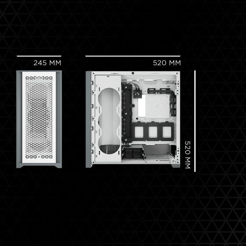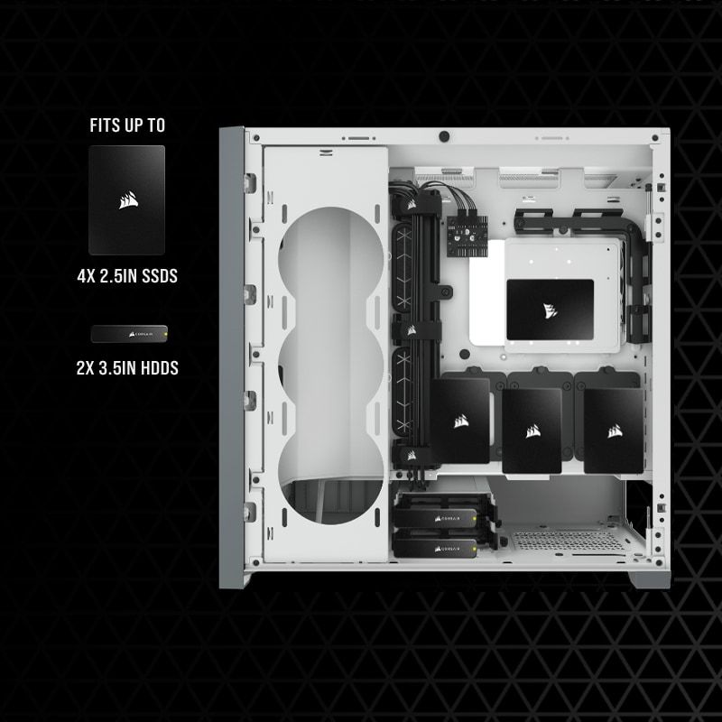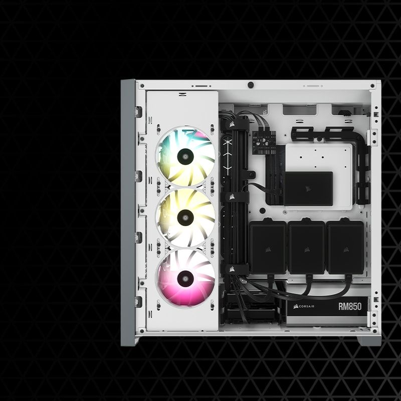CORSAIR 5000D AIRFLOW — це корпус ATX середньої вежі, який полегшує створення естетичного набору завдяки рішенням для легкої організації кабелів. У ньому є місце для радіатора діаметром 360 мм, а також передня панель, яка забезпечує інтенсивну циркуляцію повітря за допомогою двох вентиляторів CORSAIR AirGuide.