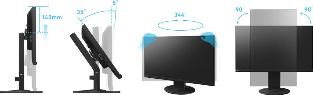 Підніжка монітора дозволяє регулювати висоту, нахил і поворот, завдяки чому екран можна легко встановити в зручне положення.