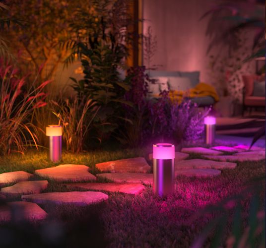 Створіть унікальну атмосферу на відкритому повітрі. Зовнішнє освітлення Philips Hue із 16 мільйонами кольорів і всіма відтінками білого світла дозволяє створити чарівну атмосферу. Ви можете зберегти свої улюблені налаштування та вибрати готові аранжування одним клацанням миші.