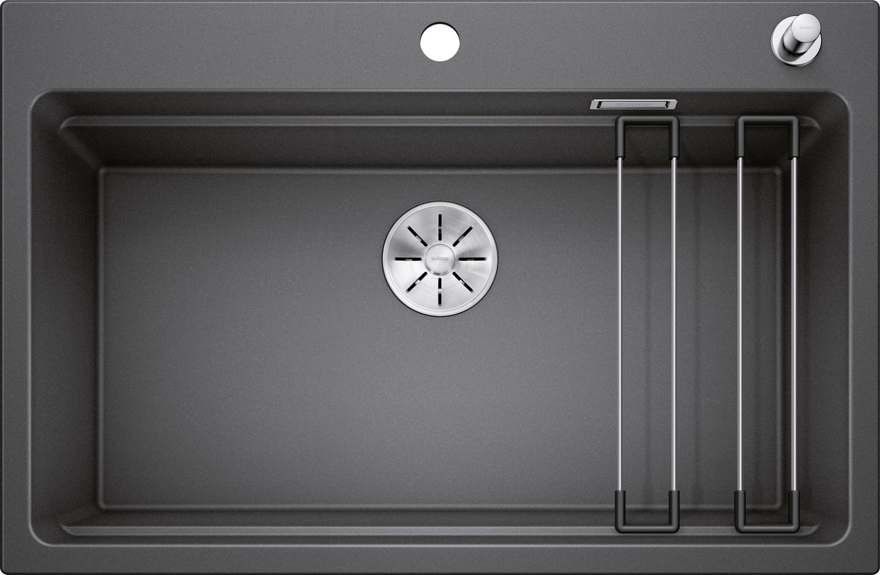 Простора, багатофункціональна, двоярусна чаша, що створює практичний центр раковини. Вбудований край створює додаткову робочу зону. Інноваційна системна концепція з напрямними ETAGON для універсального використання. Чаша, оснащена C-переливом і зливною системою BLANCO InFino - елегантна та проста в чистоті. встановлюватися зверху з елегантним плоским краєм і просторою, легкодоступною батарейною смугою