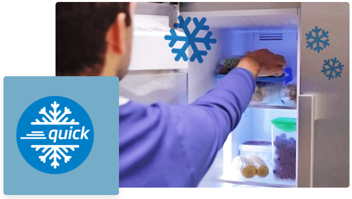 Заморожування щойно доданих продуктів здоровішим способом і без впливу на температуру продуктів, які раніше зберігалися.