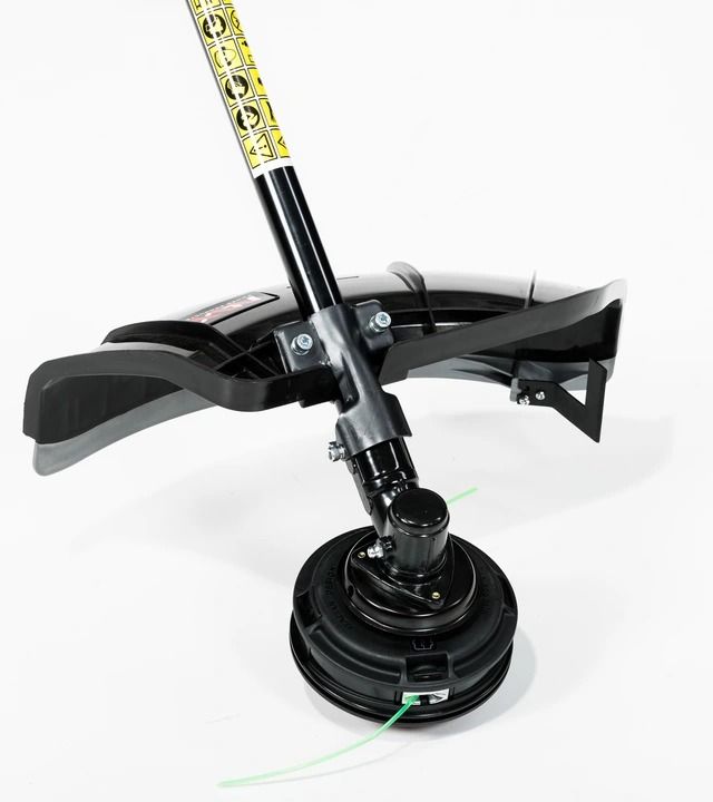 Коса оснащена струною, яка дозволяє витягнути струну після притискання головки до землі, а також потрійним металевим лезом, призначеним для великих бур’янів і кущів.