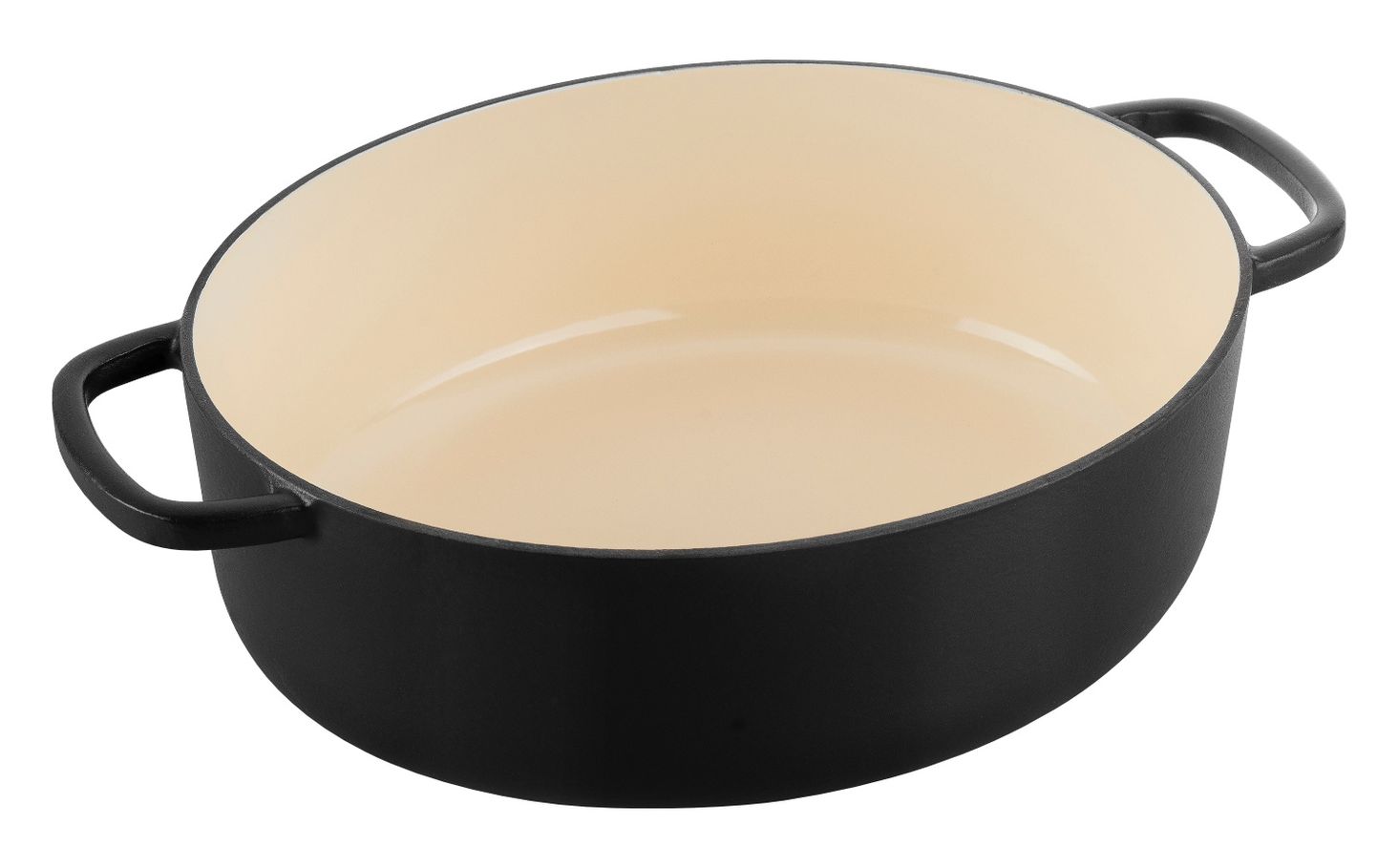 Каструля чавунна овальна, чорна, ємк. 7,5 л. Добре зберігає тепло і рівномірно розподіляє тепло. Комплектується кришкою зі спеціальною структурою. Покритий емаллю.