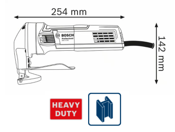 Товщина різання сталі (400 Н/мм²), макс.: 1,6 мм Швидкість ходу без навантаження: 5200 хв-1 Матеріал обробки: сталь до 400 Н/мм² при 1,6 мм Найменший радіус повороту: 35 мм Швидкість ходу під навантаженням: 4000 хв-1 Вага: 1,7 кг Розміри інструменту (довжина): 254 мм Розміри інструменту (висота): 142 мм Здатність різання сталі (600 Н/мм²), макс.: 1,2 мм Здатність різання сталі (800 Н/мм²), макс.: 0,7 мм Здатність різання алюмінію (200 Н/мм²), макс.: 2,2 мм