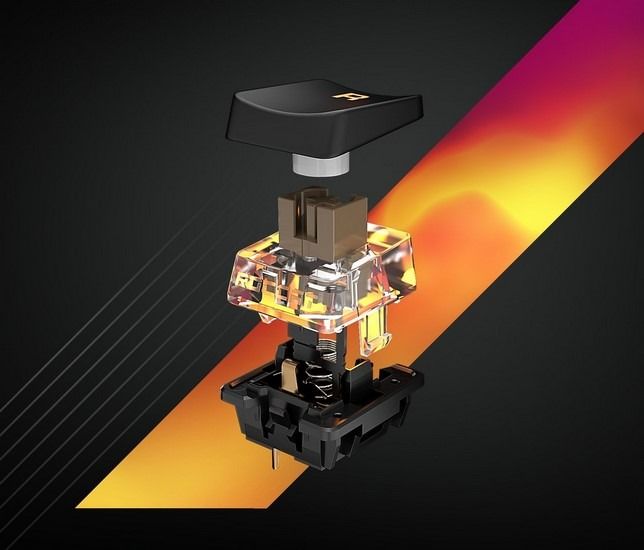 Titan Switch — це механіка та вбудоване програмне забезпечення. Механічно він має багато змін у дизайні, які наповнюють кожне натискання клавіш надійністю та послідовністю. Спеціальний корпус зміцнює структуру перемикача, щоб мінімізувати коливання з боку в бік і зробити кожне клацання сильнішим і надійнішим. Корпус також прозорий, щоб максимізувати ефект освітлення AIMO. Ще один важливий аспект — це механізм часу відскоку перемикача. Коли перемикач увімкнено, механіка оптимізована для отримання чистішого сигналу зі значно меншим шумом під час електричного контакту. Оскільки контакт стабілізується швидше, натискання клавіші можна прочитати швидше. Ця інновація дозволяє вдосконаленій мікропрограмі надійно зчитувати клацання Vulcan набагато раніше після запуску - що набагато швидше, ніж конкуруючі клавіатури - з більшим часом відгуку та точністю. Перемикач Titan Speed має точку спрацьовування 1,4 мм на загальну відстань 3,6 мм. Це наш найшвидший перемикач — на 30% швидший за стандартний — водночас різкий і чуйний.