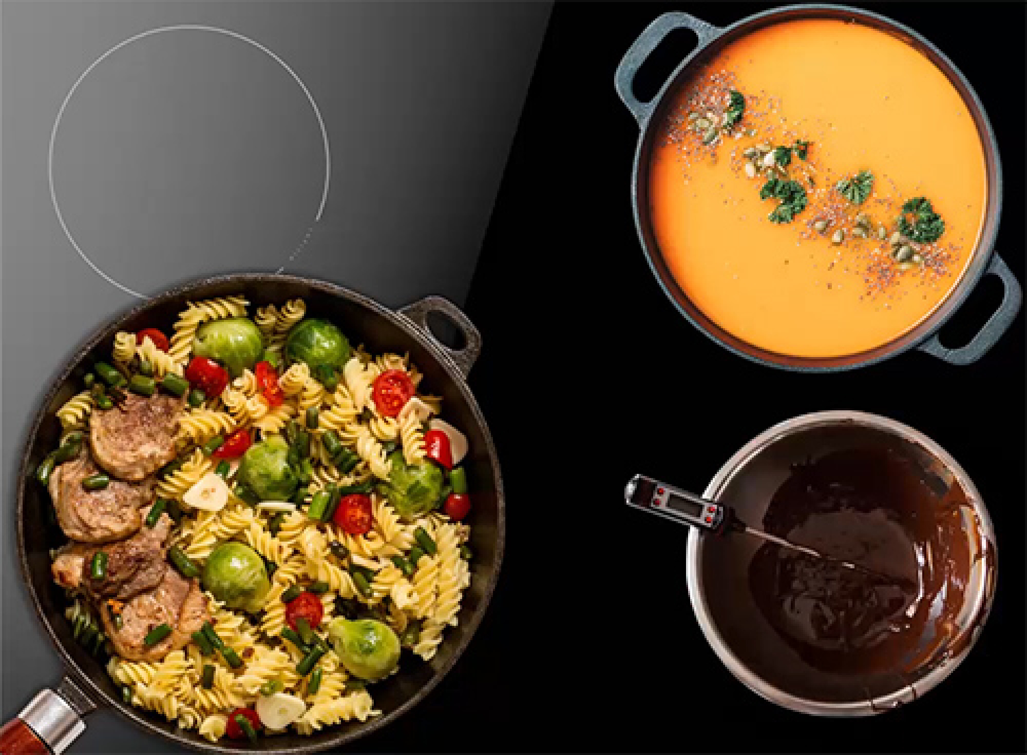 Можливість комбінувати зони нагрівання для більшої каструлі.