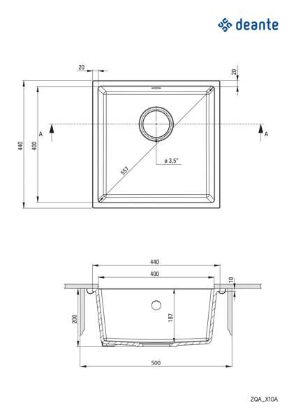 Раковина Zlewozmywak granitowy 1-komorowy podwieszany (ZQA T10A) - Deante