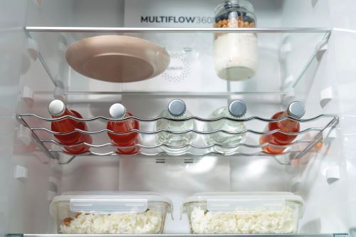 Завдяки функції дверцят холодильника, що відкриваються під прямим кутом, усі полиці та контейнери можна повністю висунути. Це рішення ідеально підходить для холодильників, розташованих біля бічної стіни або поруч зі стільницею чи іншим приладом.