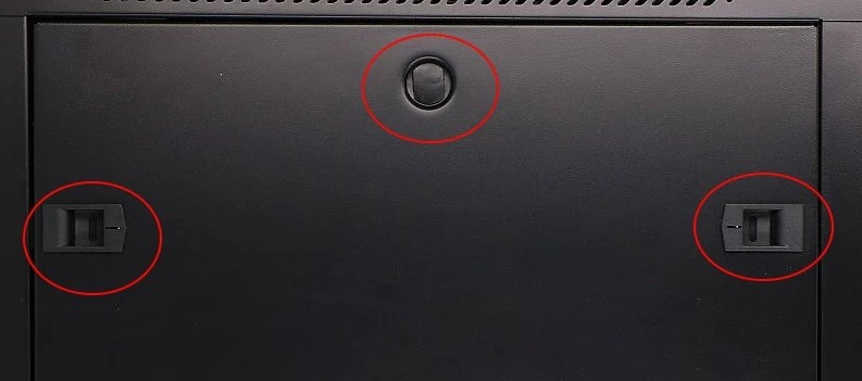 Вертикальні напрямні мають точне маркування висоти 9U (від англ. unit), а загальна висота шафи становить 50,5 см.