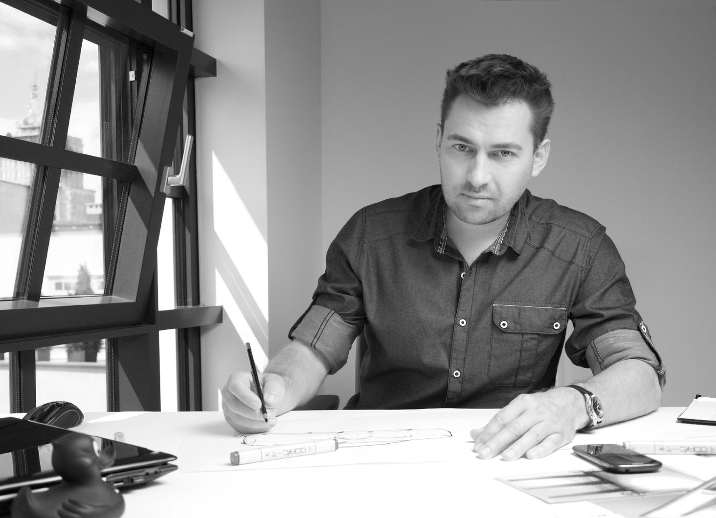 Випускник факультету промислового дизайну Академії образотворчого мистецтва в Лодзі. Він черпає натхнення у футуристичних формах, характерних для індустрії високих технологій і гоночних автомобілів. Він розробив для компаній автомобільної промисловості та індустрії дизайну інтер’єру. Його продукти отримали численні нагороди на конкурсах дизайну та отримали високу оцінку користувачів.