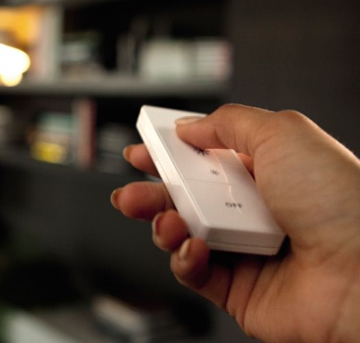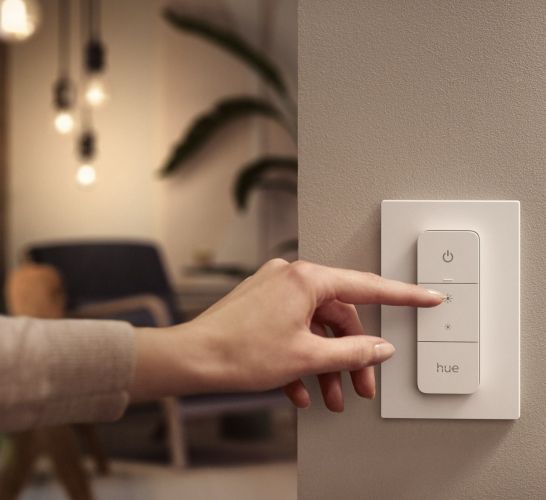 Керуйте налаштуваннями розумного освітлення Philips Hue. Регулятор може працювати як пульт дистанційного керування або панель, прикріплена до стіни.