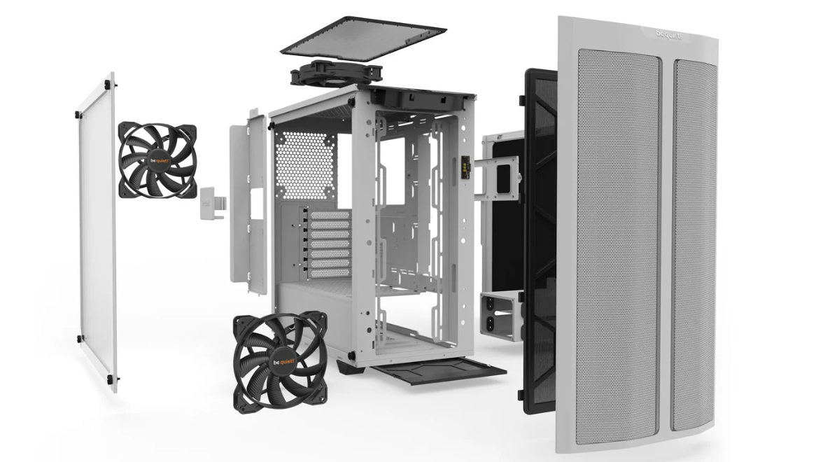 З будь тихо! Pure Base 500DX ви відчуєте повну свободу у виборі компонентів. У просторому салоні розмістяться материнські плати форматів від mini-ITX до ATX, а також потужні відеокарти довжиною до 369 мм. Отвір у лотку материнської плати дозволяє встановити ефективне охолодження процесора з максимальною висотою 190 мм.