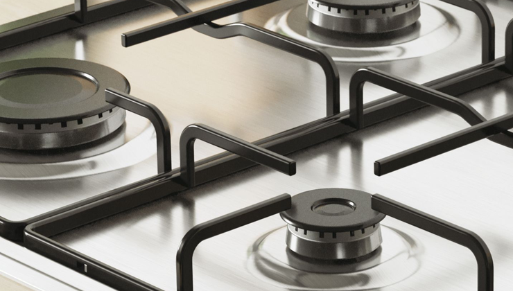 Дно газової плити покрито сталлю.