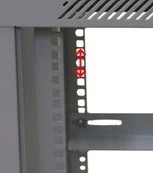 Вертикальні напрямні мають відповідне маркування висоти, яка становить 15U (від одиниці), тоді як загальна висота шафи становить 77,5 см.