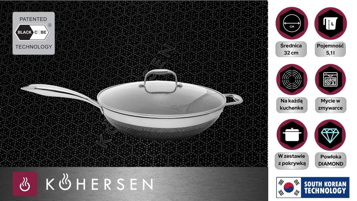 Вок Kohersen Wok z powłoką DIAMOND Black Cube 32 cm 5,1 l