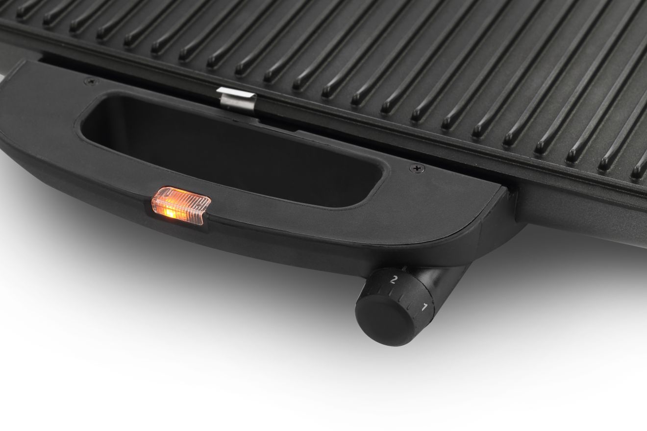 Точне налаштування температури за допомогою термостата дозволяє щоразу повторювати приготування на грилі з ідеальними результатами. Температуру можна вибрати в 4 рівнях. Після досягнення заданої температури індикатор роботи вимикається. Швидкий нагрів поверхонь, на яких ми смажимо, економить наш дорогоцінний час.