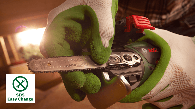 Система SDS забезпечує швидку, просту та без інструментів заміну пилкових полотен і забезпечує автоматичне блокування пилкового полотна, коли кришка закрита.