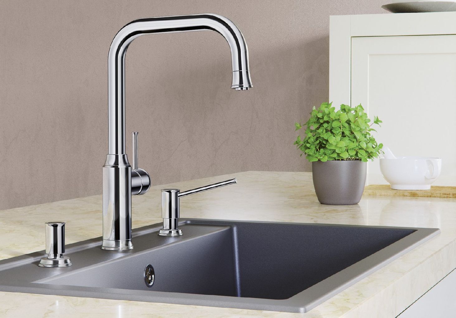 Хромований диспенсер LIVIA Сучасний дизайн із візуально контрастними декоративними елементами Системне рішення з відповідним важелем автоматичної вилки та кухонним змішувачем Доступні різні варіанти обробки поверхні Зручне заповнення рідиною зверху