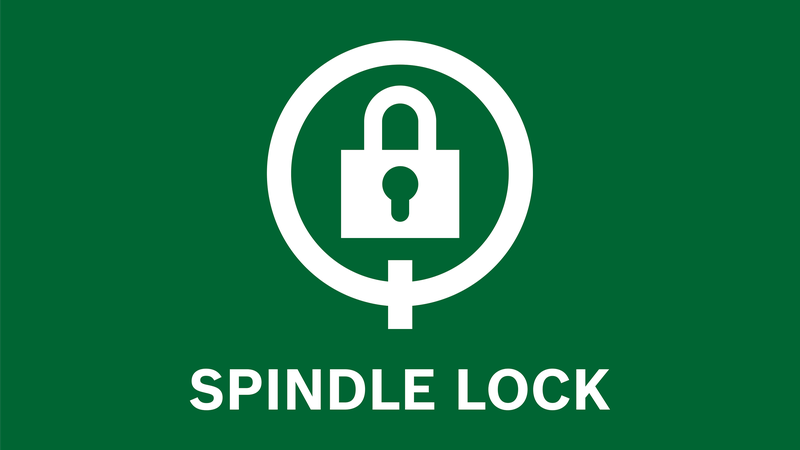 Функція блокування шпинделя дозволяє заблокувати шпиндель інструменту, коли він не використовується, і полегшує заміну дисків.