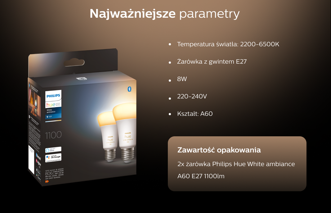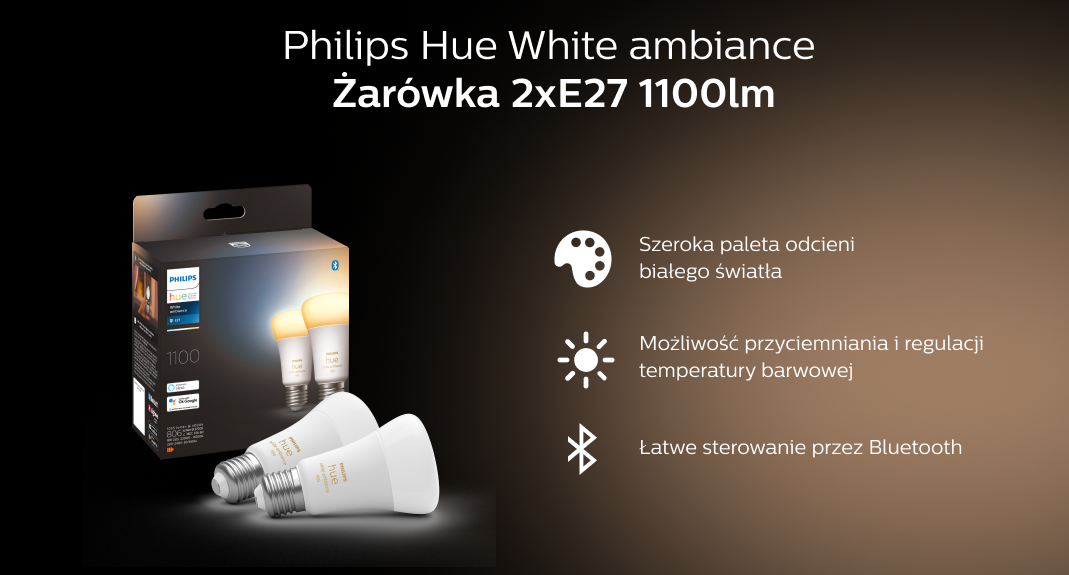 Розумне освітлення PHILIPS HUE White ambiance 2 szt. E27 1100lm (929002468404)В наявності