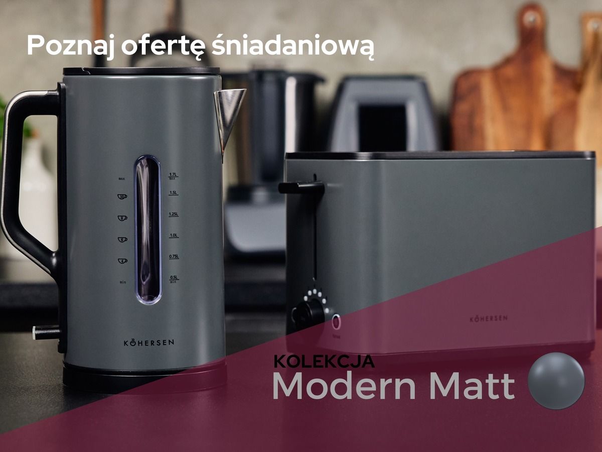 Обираючи тостер Kohersen® із колекції Modern Matt своїм кухонним помічником, ви закохаєтесь у запах свіжопідсмаженого хліба вранці. Нехай кожен день починається зі смачних тостів, завдяки яким ви зможете насолоджуватися їх надзвичайним смаком і приємним хрускотом.