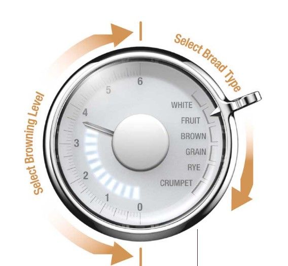 6 рівнів підсмажування 6 налаштувань типу хліба (білий, фруктовий, коричневий, зерновий, житній, м’ясний) Функція «Frozen» — функція підсмажування для замороженого хліба Функція «Lift & Look» дозволяє підняти хліб і перевірити ступінь підсмаження без необхідності переривати операцію. Функція «трохи більше» подовжить процес підсмажування на 30 секунд для ще кращої хрусткості. Функція негайного переривання (кнопка «Скасувати») Надвеликі отвори для підсмажування для більших скибочок хліба. Автоматичне центрування тостів