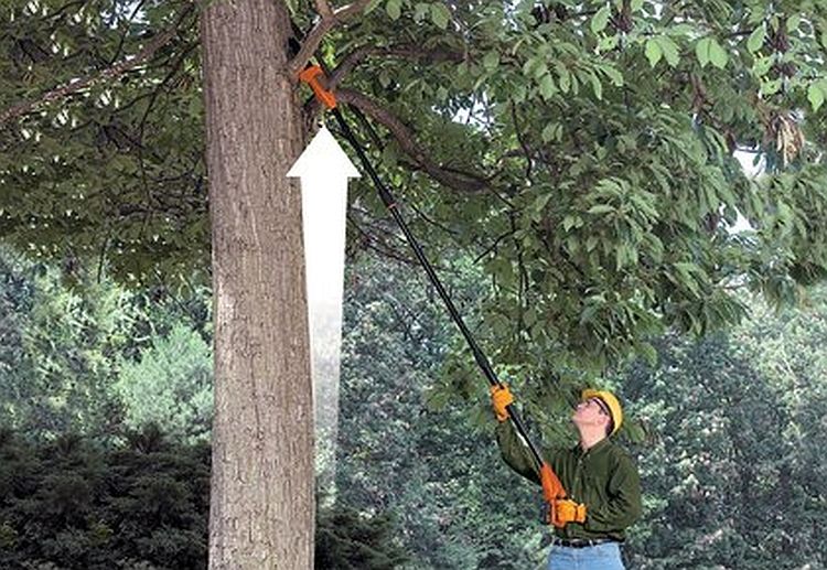 Стріла з регульованою довжиною від 2 до 3 м дозволяє вам досягти висоти до 4,5 м над головою. Зручність роботи з акумуляторним інструментом – усунення ризику перерізання шнура живлення та відсутність шкідливих вихлопних газів, які можуть в результаті роботи з інструментом, що працює з паливним двигуном