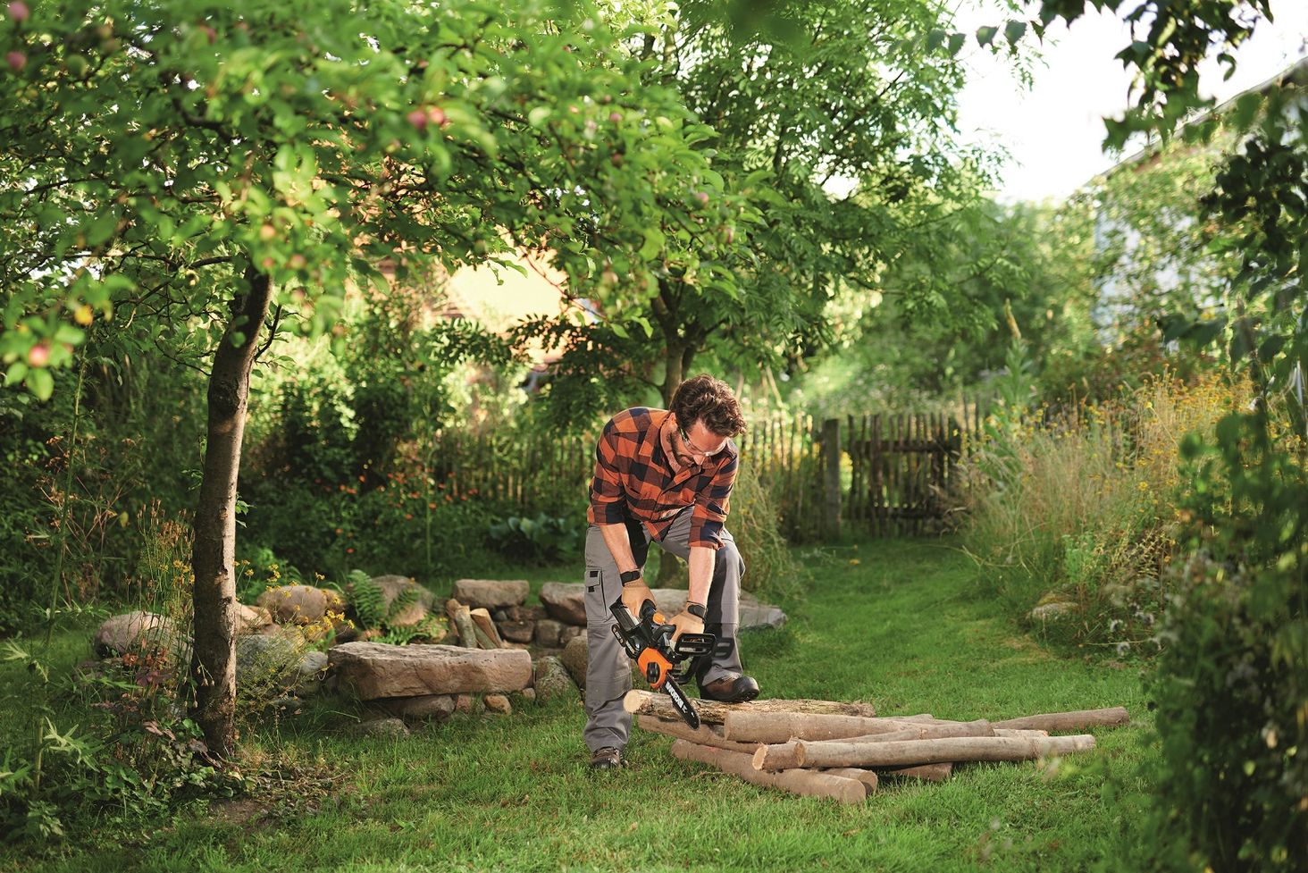 Акумуляторна ланцюгова пилка Worx WG322E 25 см 20 VM має достатню потужність, щоб забезпечити чистий і швидкий різ під час швидкого прибирання чи обрізки. Він також має такі функції, як наша запатентована система автоматичного натягування ланцюга без інструментів, яка підтримує оптимальний натяг ланцюга під час різання, і автоматичне змащування ланцюга для безпроблемної роботи.